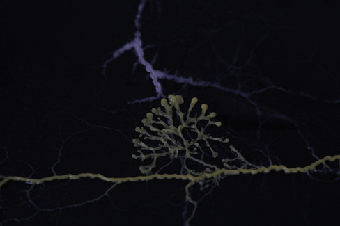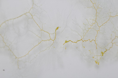 I have done some initial research to understand the blob before my experiment. I read about its ability to find a way by analysing the space around it (Slime Mould Senses, n.d.). "In the first stage of their life cycle, they exist as groups of individual cells that move around in the soil. They are so small they are invisible to the naked eye. Then they come together as a large mass in the plasmodial stage where they form into blobs or intricate patterns that have a slime-like appearance, hence the name slime mould." (Childsplayabc, 2022)