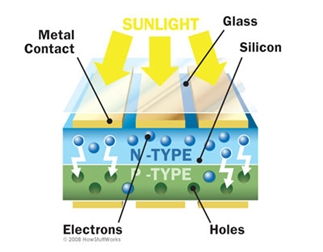 Solar panels have two materials commonly silicon that have "conductive properties that enable the absorption and conversion of sunlight into electricity." (How Do Solar Panels Work? – Humless Solar ESS Battery and Inverter Storage Solutions, n.d.) When the sun hits these two materials the electrons get into motion which creates the electrical flow. Because the different layers have a negative or positive charge the space between them becomes an electrical field. That electrical field pushes the electrons out when photons knock them free. "Conductive metal plates on the sides of each cell transfer these electrons to the wires of the solar panel." (How Do Solar Panels Work? – Humless Solar ESS Battery and Inverter Storage Solutions, n.d.)